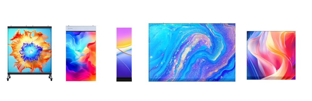 - P Series :天吊りポスター型 (複数台連結が可能な55、70、80、90インチのスクリーンサイズ)
