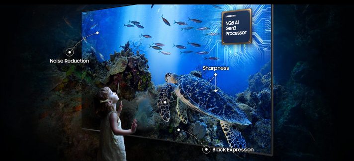 サムスンの最先端技術「Quantum Mini LED Pro」は、量子マトリクス技術Proによって精密に制御されます。従来のLEDのわずか1/50のサイズで、暗部から明部まで細部とコントラストを強化した超微細な光制御を実現。視覚的明瞭さが重要なビジネス環境に最適です。*