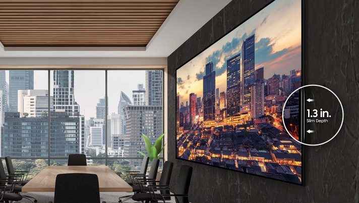 115インチという超大型画面にもかかわらず、QHFXはわずか1.3インチという驚くほどスリムなプロファイルを実現。洗練された薄型設計は設置の柔軟性を高め、全体的な美観を向上させるため、性能と同様にデザインが重視される現代的な環境に最適です。