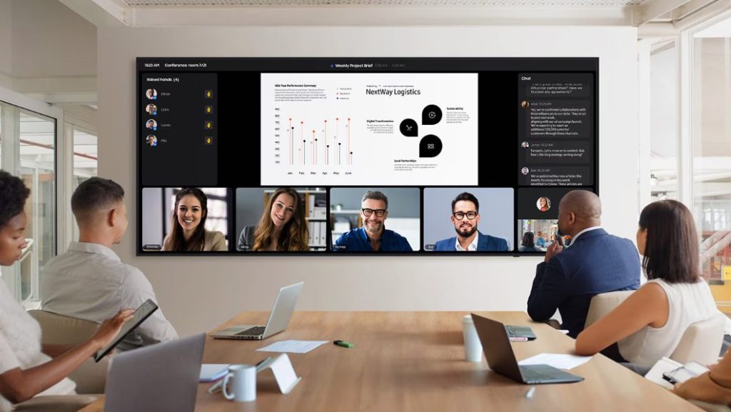 SamsungのSmartThingsは家庭を超え、ビジネス環境にもシームレスに統合されます。会議室で未使用のデバイスは自動的に電源が切れ、システムは最適なエネルギー効率を実現するため空調を調整します。