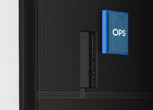 QPDX-5KのOpen Pluggable Specification(OPS)により、ディスプレイがWindowsデバイスとして機能するため、追加のPCやデバイスが不要になります。OPSを利用すれば、ユーザーは好みのソフトウェアをQPDX-5K上で直接簡単に実行でき、会議における生産性と柔軟性が向上します。